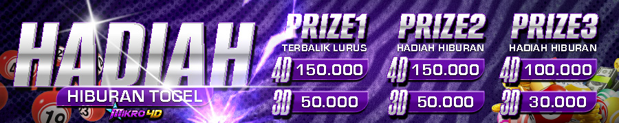 - Hadiah prize 3 : 4D = Rp. 100.000,- / 3D = Rp. 30.000,-